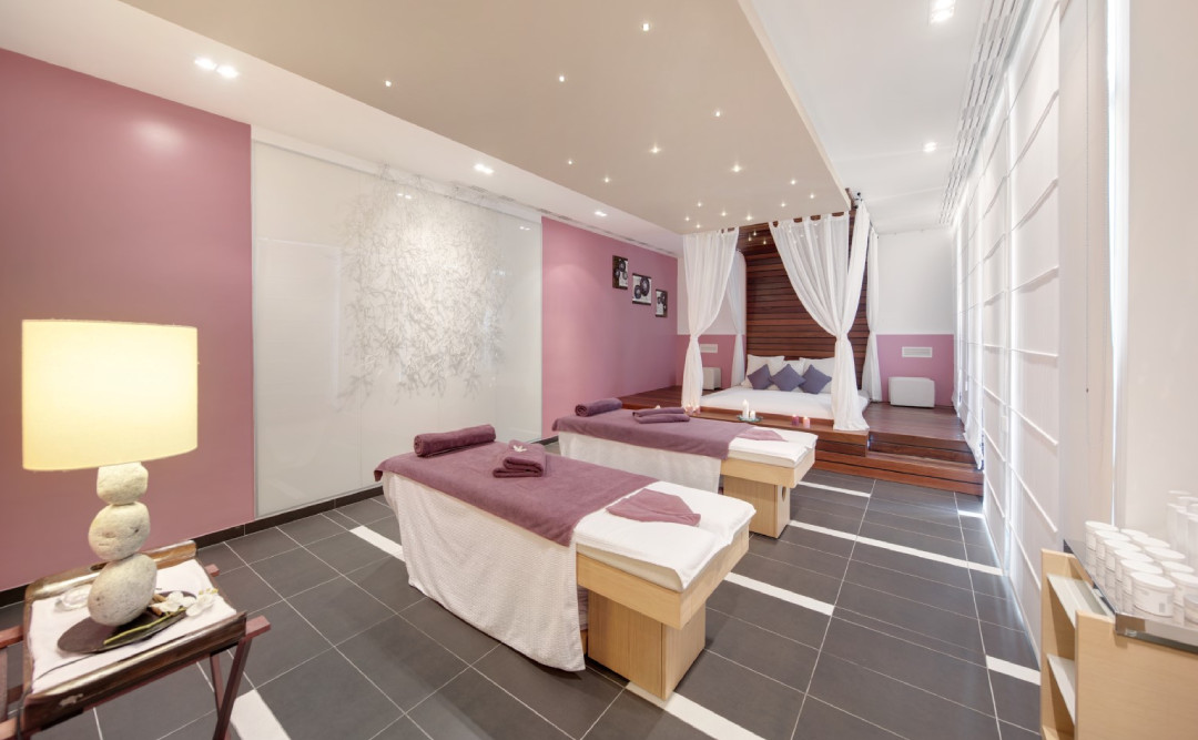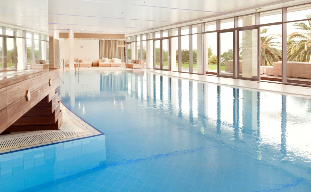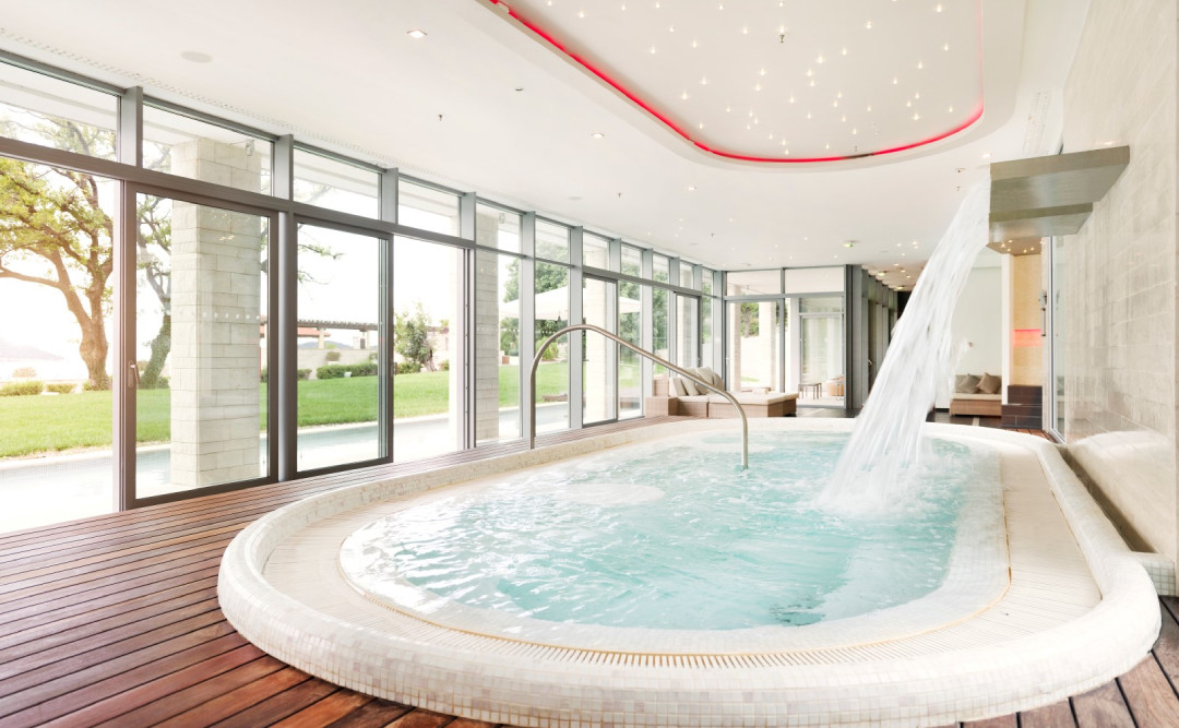 Entrance to the Spa Centre with access to relaxing 18-meter lagoon pool with underwater vitality jet loungers, hydrotherapy pool with therapeutic massage jets, the thermal area including a traditional coal sauna, salt sauna, hammam, aromatherapy steam room, large cold-plunge pool and lifestyle showers, tepidarium with five individual stone lounge chairs, poolside loungers and relaxation zone with stunning views, vitality juice bar with sun terrace (all the drinks at an extra charge) and changing rooms (additional spa treatments are available at an extra charge and are not included)